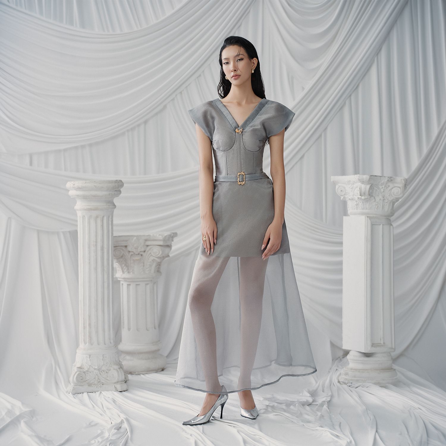 Đặc điểm nổi bật: Váy xuyên thấu, Đai vải ở eo, Cúp ngực, Eo corset.
