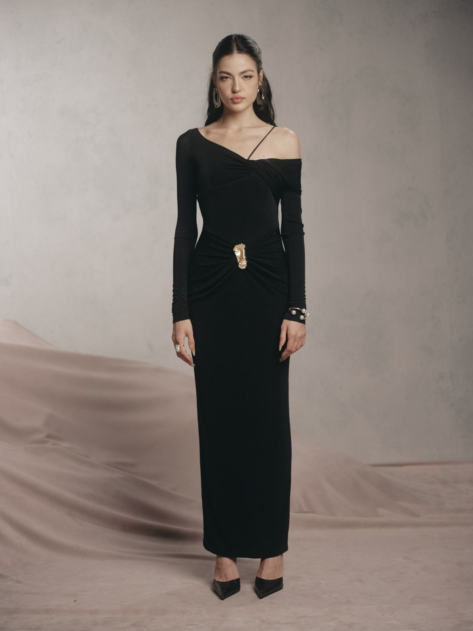 Đặc điểm nổi bật: Vai bất đối xứng, Dây đeo chéo, Eo nhún